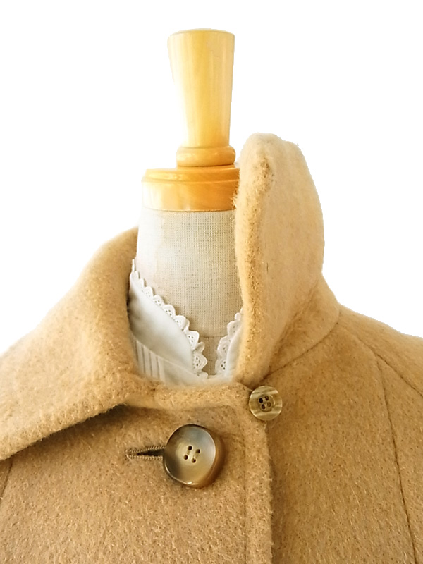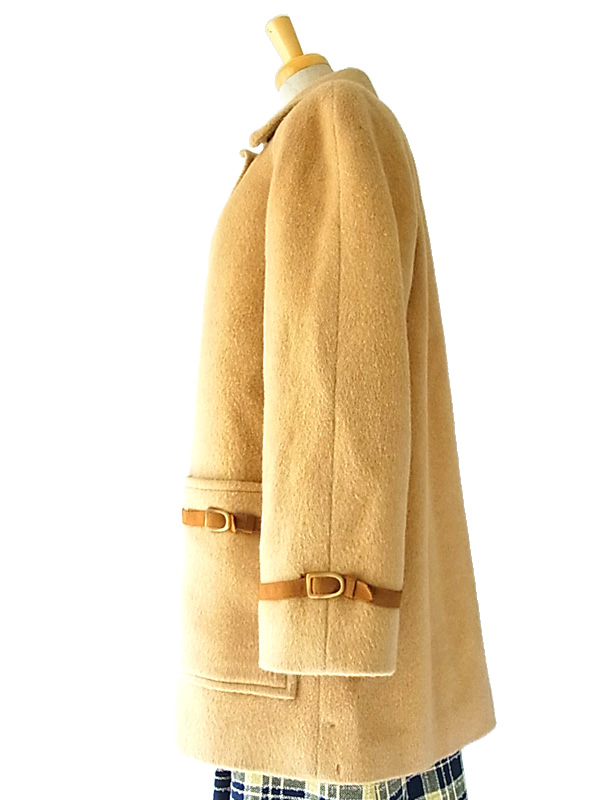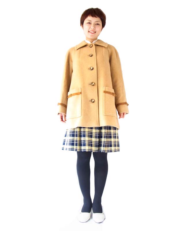 英国ブランドAquascutum製、ソフトな色合いとモダンなデザインが素敵なウールコート モダン・ブリティッシュブランドとして、長きにわたって本物を追求するエグゼクティブから支持を受け続けてきた Aquascutum社製の ウールコートです。 ソフトなウールを使用して、綾織された大変打ち込みの良い素材を使用しています。 厚手の生地を使っているため、防寒性に優れいているうえ、肌触りも大変柔らかです。 柔らかな色合いにふさわしい、かわいらしいシルエットがとても素敵です。 袖口、ポケット部のベルト、かわいらしいボタンなどディティールもこっています。 デザイン、シルエットも申し分のないしっかりしたつくりになっており、オススメです。 左側面にリペア跡1点と微細な穴が1点空いていますが、着用時には特に目立ちません。 モデル身長162cm。 デザイン、シルエットも申し分のないしっかりしたつくりになっており、状態も良好で、オススメです。