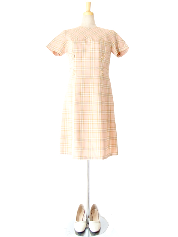 | □ 商品名・商品コード | フランス買い付け ピンク・ X ゴールド・グレイ・ホワイト チェック柄 ワンピース : 13FC513 |