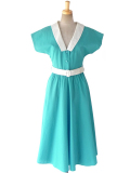やはり直感は当たりました!なんと表現しましょうか、レトロ映画のワンシーンでスキップしている風景が浮かぶような素敵なお品です★エメラルドグリーンのポップな色味も美しいですね、スカート部分のフレアが絶妙で綺麗ですしシルエットそのものが可愛いのでかなり気に入りました!