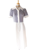 TOPページヘ レディースワンピース/チュニック半袖/ノースリーブ 【送料無料】70年代フランス製 CAROLINE ROHMER オフホワイト X ネイビー ストライプ ワンピース 26FC119【ヨーロッパ古着】 価格: ¥15,400 (税込) [ポイント還元 462ポイント~] 販売期間: 数量: 着 在庫 1着 返品についての詳細はこちら レビューはありません 【送料無料】70年代フランス製 CAROLINE ROHMER オフホワイト X ネイビー ストライプ ワンピース 26FC119【ヨーロッパ古着】 フランスの老舗ブランド、**Caroline Rohmer(キャロライン・ローマー)**による、 70年代フランス製ヴィンテージワンピースの傑作。 フレンチ・トラッドの神髄を感じさせる一着です。 キャロライン・ローマーは、 70年代から80年代にかけて質の高いリアルクローズを展開していたフランスのブランド。 流行に左右されないパリ・シックなデザインと、丁寧な仕立てに定評があり、 今なおヴィンテージ愛好家の間で根強い人気を誇ります。 当店でも過去数点お取り扱いがありましたが、瞬時に完売する人気でした。 本品は、胸元、袖部分、生地の切り返しになっており、 オフホワイトにネイビーの細やかなストライプが走る、 涼やかで清潔感あふれる表情が魅力。 このストライプ部分は、まるでゴム編み(リブ編み)のように編み組織が工夫されており、 心地よい伸縮性を備えています。コットンのさらりとした肌触りと、 身体の動きにしなやかに寄り添うストレッチ性が両立した、 非常に質の高いテキスタイルです。 デザインは、端正な半袖に程よくシェイプされたウエストライン。 フロントに並んだ小ぶりのボタンが縦のラインを強調し、 ストライプ柄と相まって全身をスッキリとスマートに見せてくれます。 無駄を削ぎ落としたミニマルなシルエットの中に、 老舗ブランドらしい仕立ての良さが光ります。 コンディションはヴィンテージゆえの極めて薄いシミが数点見られますが、 着用時にはほとんど目立たず、これからも長く愛用いただける状態です。 お気に入りとの出会いはいつでも一期一会。 気になったらぜひご試着を。 DETAIL □ 商品名・商品コード 70年代フランス製 CAROLINE ROHMER オフホワイト X ネイビー ストライプ ワンピース 26FC119 □ 素材/伸縮性/透け感 : 素材 コットン / 裏地なし / 伸縮性 胸元に若干あり /透け感なし / ファスナー:なし □ サイズ: サイズ表記なし Mサイズ:日本サイズで9号位の印象 着丈/103cm 肩幅/35cm バスト/43cm ウエスト/36cm ヒップ/47cm 袖丈/24cm 袖幅/19cm (平置採寸:約) □ コンディション: 【5段階評価】: B ヴィンテージ品のため、極めて薄いシミが数点みられますが、着用時にはほとんど目立ちません。 サイズ、採寸に関してはこちらをご覧ください。 【送料無料】70年代フランス製 CAROLINE ROHMER オフホワイト X ネイビー ストライプ ワンピース 26FC119【ヨーロッパ古着】 価格: ¥15,400 (税込) [ポイント還元 462ポイント~] 販売期間: 数量: 着 在庫 1着 返品についての詳細はこちら レビューはありません こちらの商品もオススメです 【送料無料】70年代フランス製 パステルブルー ヨーク切替 フラップポケット ワンピース 26FC113【ヨーロッパ古着】 ¥13,200(税込)