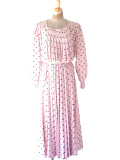 TOPページヘ レディースワンピース/チュニック長袖 【送料無料】フレンチローズ X ブラック 水玉 共布ベルト付き プリーツ ドレス OD241【ヨーロッパ古着】 価格: ¥13,200 (税込) [ポイント還元 396ポイント~] 販売期間: 数量: 着 在庫 1着 返品についての詳細はこちら レビューはありません ヨーロッパ古着 ロンドン買い付け 60年代製 ピンク X ブラック 水玉 共布ベルト付き ヴィンテージ ドレス OD241 淡く光沢を帯びたピンクの生地に、 同系色の淡いピンクとブラックのドットがリズミカルに浮かぶ── 柔らかさの中に上品なコントラストを秘めた、 洗練された印象のヴィンテージワンピースです。 胸元には繊細なプリーツが寄せられ、 立体感のある陰影がやさしく揺れます。 ファスナーを使わず、スナップ留めで開閉できるデザインは、 どこか手仕事のぬくもりを感じさせる仕様。 ウエストはゴム入りで自然にフィットし、 共布ベルトでシルエットを美しくまとめられます。 スカート前面は上身頃のプリーツ生地をそのまま垂らしたユニークな構造で、 めくると本体スカートが現れる二重仕立て。 動くたびに光を受けてドットがきらめき、優雅なドレープが生まれます。 軽やかなポリエステル素材は裏地付きで透け感がなく、 日常にもお出かけにも心地よく着られる一枚。 春先や秋口にはもちろん、淡い色味が映える初夏にもおすすめです。 甘すぎないピンクに、ブラックドットがさりげなくアクセントを添える── フェミニンとモダンが絶妙に調和した“フレンチローズ・ドットプリーツワンピース”。 日常を少し特別にしてくれる、気品あるヴィンテージドレスです。 コンディションは良好で、目立つダメージは皆無。 非常にきれいな状態です。 DETAIL □ 商品名・商品コード フレンチローズ X ブラック 水玉 共布ベルト付き プリーツ ドレス OD241 □ 素材/伸縮性/透け感 : 素材 ポリエステル/ 裏地スカート部分にあり / 伸縮性あり(ウエストゴム入り ) / 透け感なし / ファスナー:なし □ サイズ: サイズ表記なし 大きめMサイズ:日本サイズで9号位の印象 着丈/131cm 肩幅/35cm バスト/44cm ウエスト/31~38cm ヒップ/48cm 袖丈/60cm 袖幅/8cm (平置採寸:約) □ コンディション: 【5段階評価】:A 目立つダメージはまったくなく、非常にキレイな状態です。 サイズ、採寸に関してはこちらをご覧ください。 【送料無料】フレンチローズ X ブラック 水玉 共布ベルト付き プリーツ ドレス OD241【ヨーロッパ古着】 価格: ¥13,200 (税込) [ポイント還元 396ポイント~] 販売期間: 数量: 着 在庫 1着 返品についての詳細はこちら レビューはありません こちらの商品もオススメです 【送料無料】70年代フランス製 オフホワイト X オレンジ・ブラック 幾何学柄 フロントジップ ワンピース 25FC209【ヨーロッパ古着】 ¥11,000(税込) 【送料無料】フランス買い付け 70年代製 オレンジ X ゴールド・ブラック・ベージュ サイケ柄 ヴィンテージ トップス 25FC210【ヨーロッパ古着】 ¥11,000(税込) 【ヨーロッパ古着】イタリア製 UNITED COLORS OF BENETTON カラフル 花柄 プリーツ スカート 25FC213【おとなかわいい】 ¥7,700(税込) 【送料無料】フランス買い付け 60年代製 グレイ X レッドステッチ 千鳥格子 ポケット付き プリーツ スカート 25FC212【ヨーロッパ古着】 ¥9,900(税込) 【ヨーロッパ古着】ベルギー製 アーガイル×タータンチェック ヴィンテージ ニット トップス 25FC211【おとなかわいい】 ¥5,500(税込) 【送料無料】フランス買い付け 60年代製 ダークブルー X ブラウン 千鳥格子 ヴィンテージ ウール ワンピース 25FC206【ヨーロッパ古着】 ¥11,000(税込) 【送料無料】フランス買い付け 60年代製 ブラウン X スレート・レッド ピンストライプ ヴィンテージ ワンピース 25FC208【ヨーロッパ古着】 ¥11,000(税込) 【送料無料】70年代フランス製 ホワイト X ダークブラウン レトロ柄 共布ベルト付き ヴィンテージ ワンピース 25FC205【ヨーロッパ古着】 ¥9,900(税込) 【送料無料】フランス買い付け 70年代製 ホワイト X ネイビー・レッド ボーダー・水玉 ボウタイ ワンピース 25FC204【ヨーロッパ古着】 ¥9,900(税込) 【ヨーロッパ古着】フランス買い付け 60年代製 ベージュ X オレンジ・ブラウン リーフ柄 ポケット付き スカート 25FC214【おとなかわいい】 ¥5,500(税込) 【ヨーロッパ古着】フランス買い付け 70年代製 ブルーグリーン×ボタニカル柄 プリーツスカート 25FC215【おとなかわいい】 ¥7,700(税込)