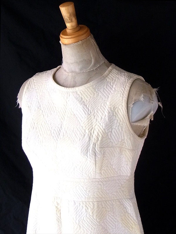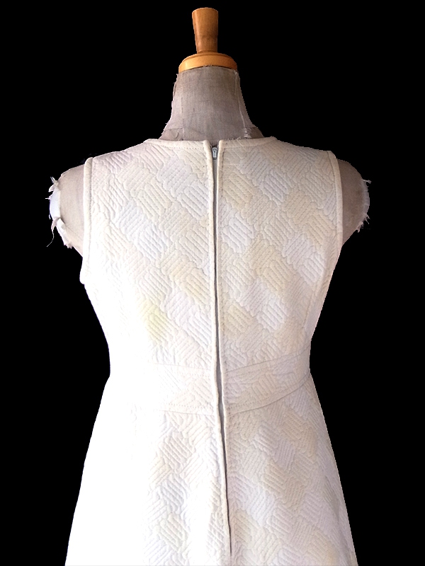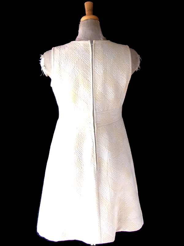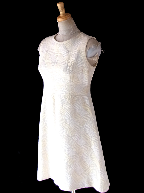 【送料無料】フランス買い付け 60年代製 ホワイト X アイボリー 凹凸で幾何学模様の浮かぶ生地 ヴィンテージ ワンピース 18FC205【ヨーロッパ古着】