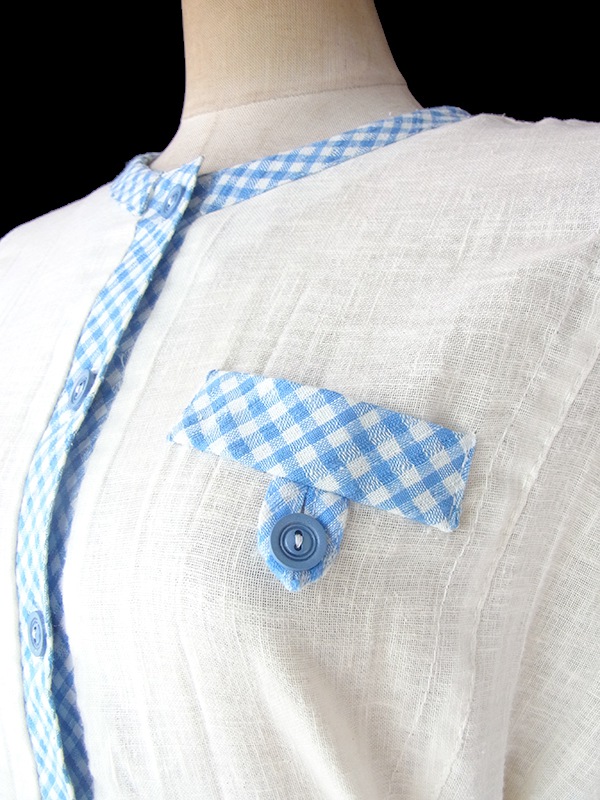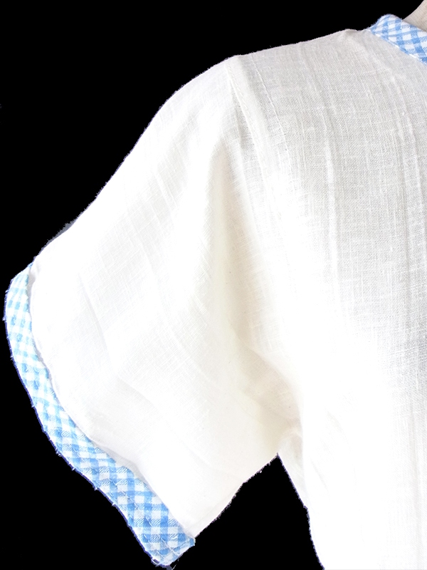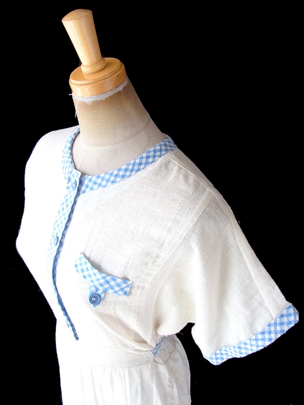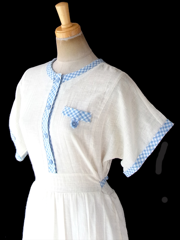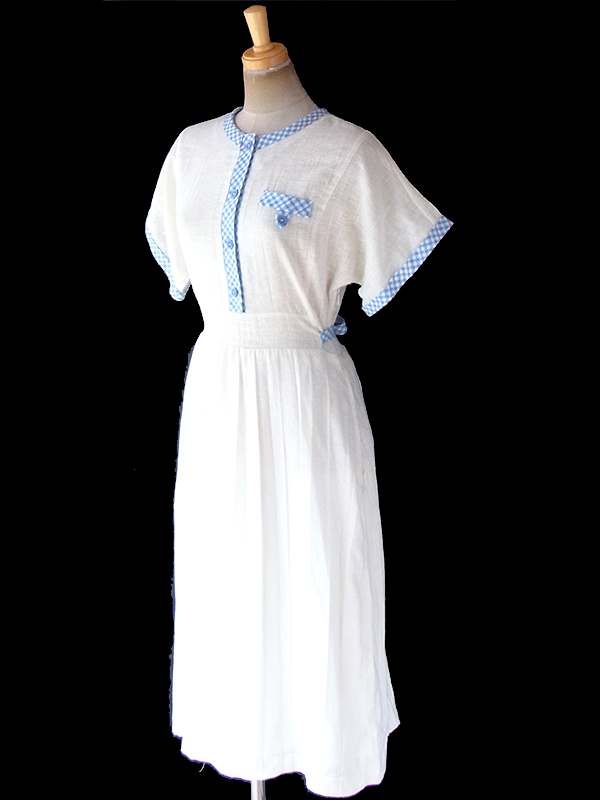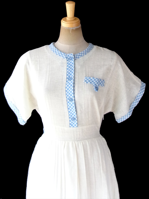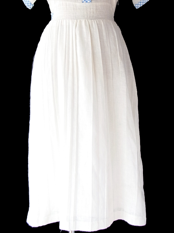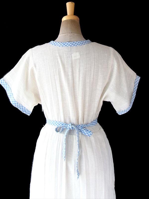 【ヨーロッパ古着】ロンドン買い付け 60年代製 ホワイト X 水色 ギンガムチェック プリーツ ワンピース 19BS215【おとなかわいい】