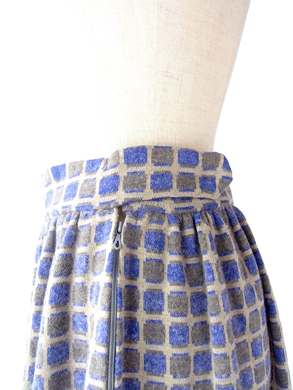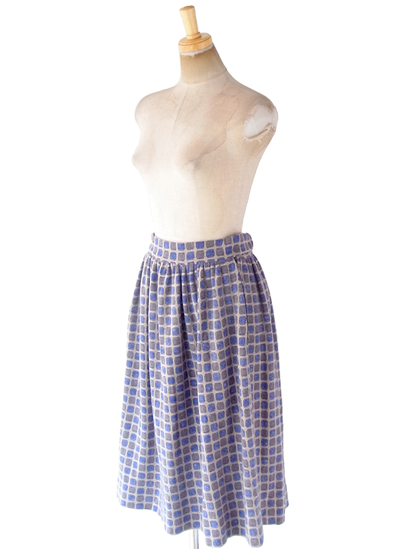 【ヨーロッパ古着】フランス買い付け 60年代製 パープル X グレイ スクエア柄 ヴィンテージ スカート 19FC424【おとなかわいい】