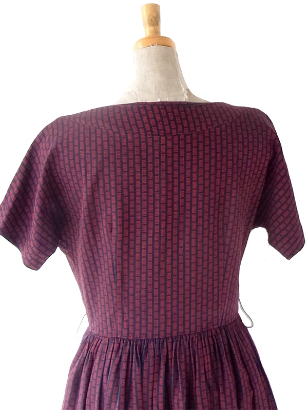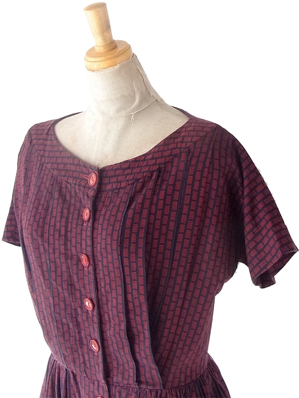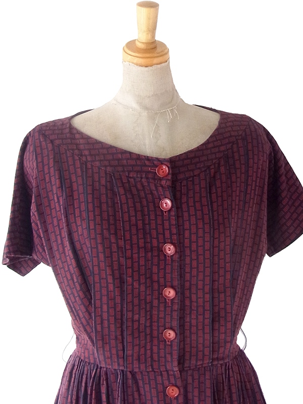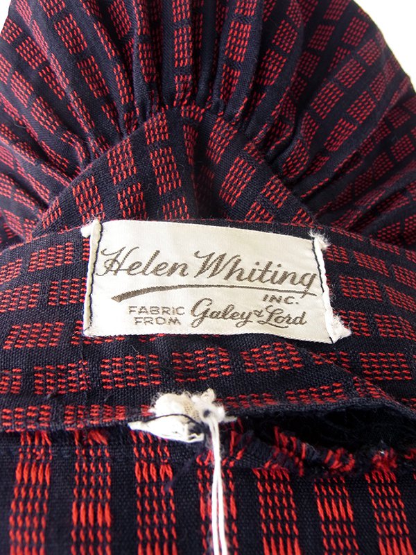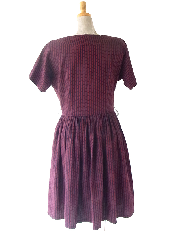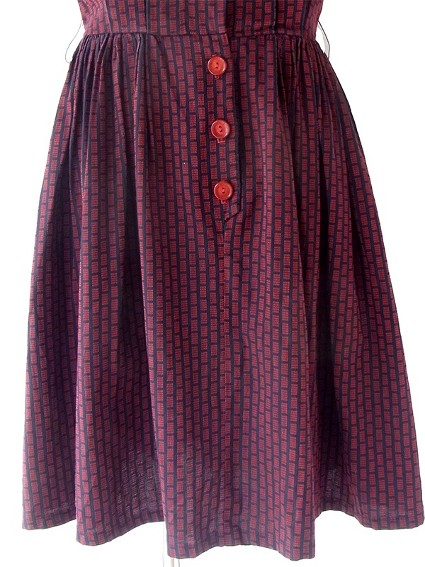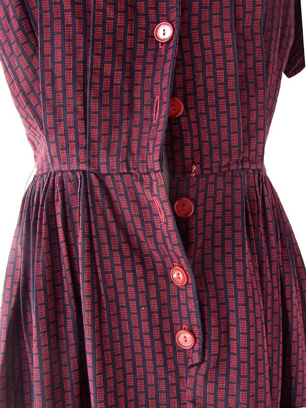 【送料無料】60年代フランス製 レッド X ブラック レトロ柄 ヴィンテージ ワンピース 23FC100【ヨーロッパ古着】