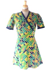 【送料無料】フランス買い付け 70年代製 ゴールド X 絵画風花柄 山道テープ ワンピース 23FC116【ヨーロッパ古着】