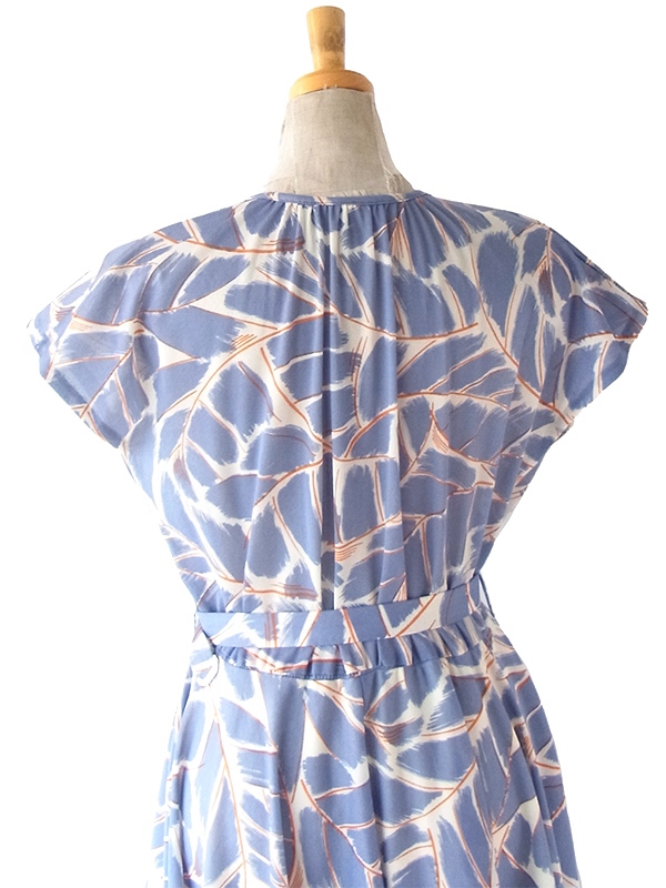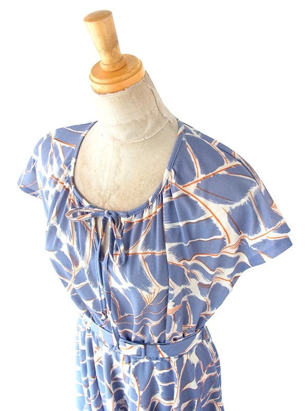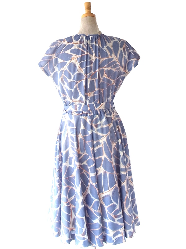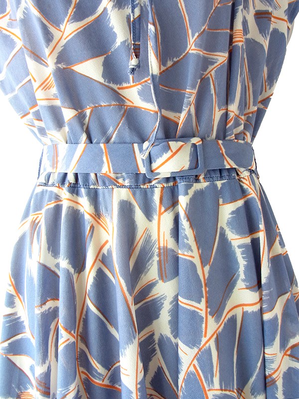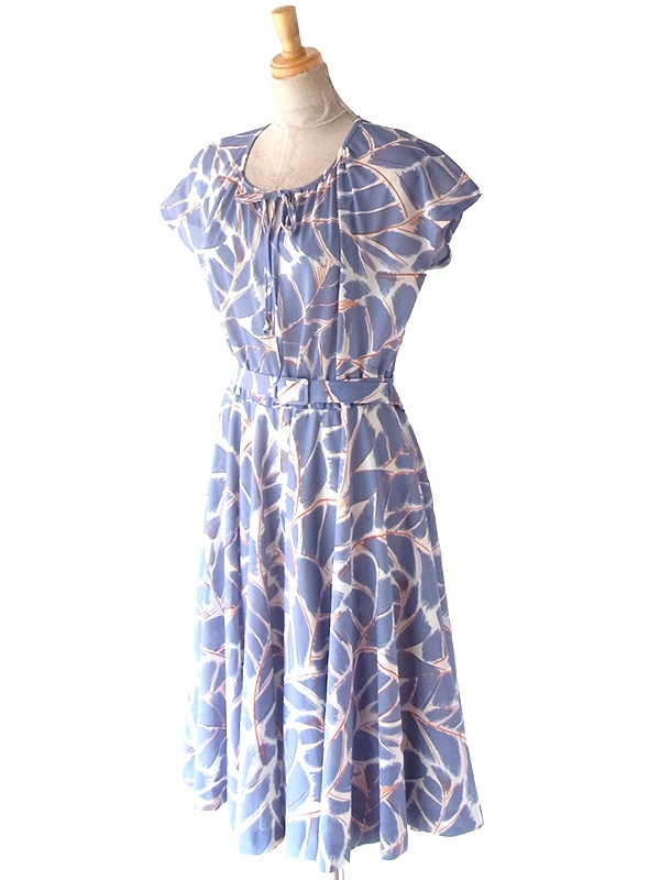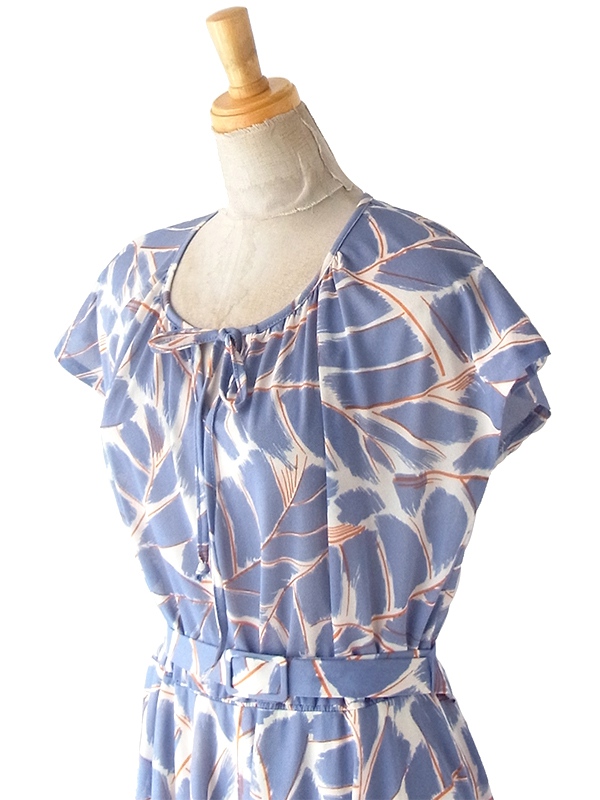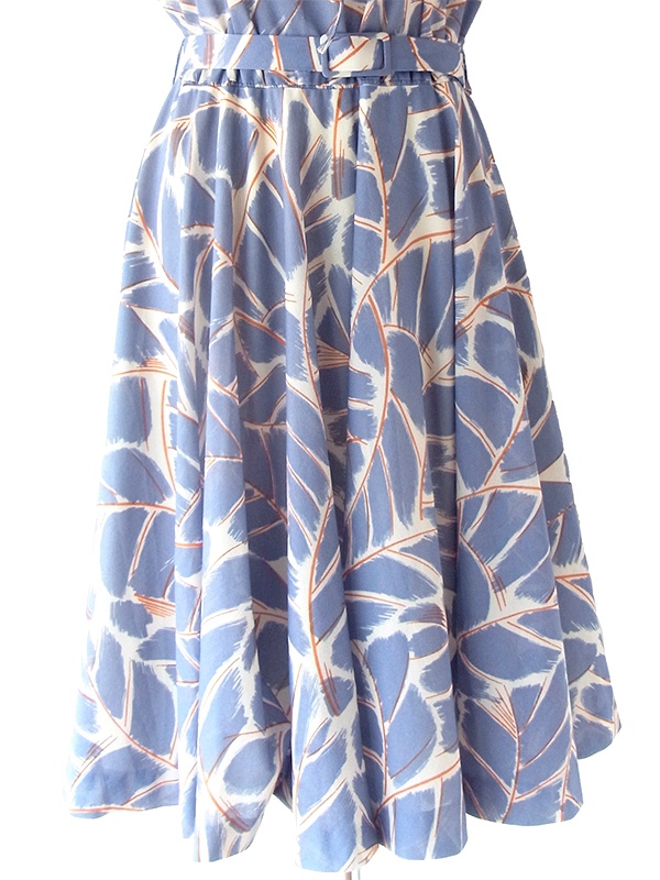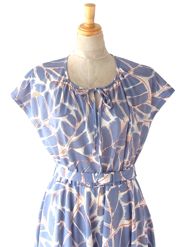 【送料無料】フランス買い付け 70年代製 グレイ X レッド・ホワイト レトロ柄 共布ベルト付き ワンピース 24FC205【ヨーロッパ古着】