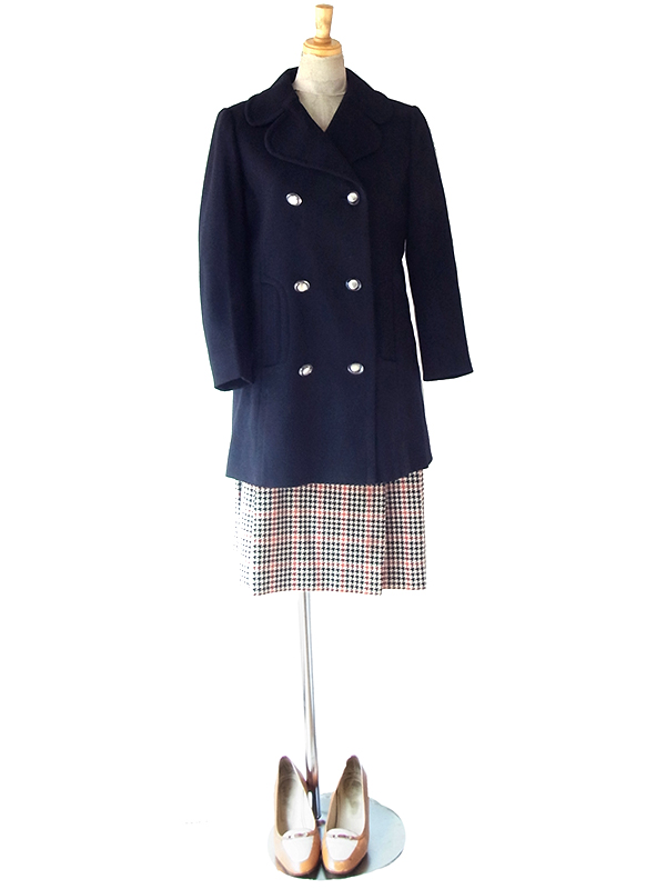 【送料無料】70年代製 Pierre Cardin ネイビーX ダブルブレスト ウール ピーコート 24NS001【ヨーロッパ古着】